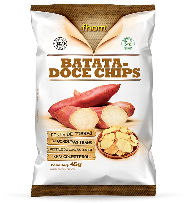 Produzidas com batata-doce, as Batatas-Doces Chips da Fhom são 100% naturais e livres de conservantes, além de serem produzidas com sal light. Ótimas companheiras de academia, elas também ficam ótimas como petisco. Experimente!