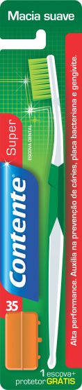 Grátis: protetor de cerdas. Cabeça regular com 35 tufos de cerdas em nylon de dupla ação (cerdas médias no centro para higienizar os dentes e macias nas laterais para não machucar as gengivas sensíveis). Cabo emborrachado bi‐componente (polipropileno borracha). Cerdas coloridas que indicam a hora da troca. Cerdas com pontas arredondadas e polidas que protegem a gengiva e o esmalte dos dentes. Alto poder de higienização e capacidade de limpeza. Auxilia na prevenção de cáries, placa bacteriana e gengivite.